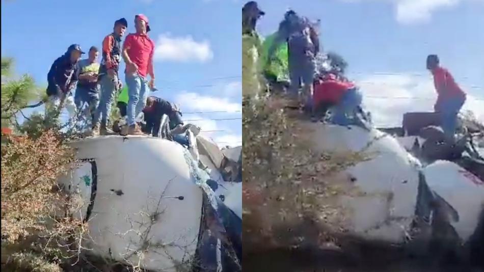 Usuarios de redes sociales compartieron videos del rescate de las personas que quedaron atrapadas en el bus tras el violento choque.