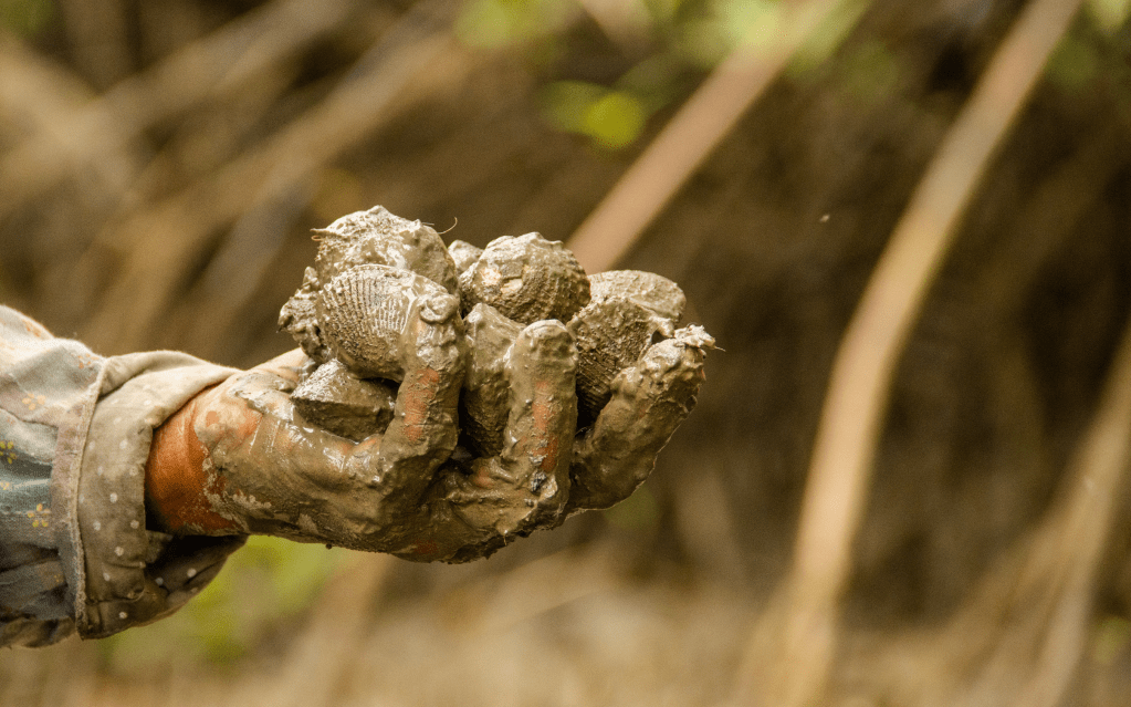 Ya en el sitio, de acuerdo con un informe publicado en diciembre pasado en El Espectador, introducen sus brazos en el barro frío, sobre todo en el que se encuentra junto a las raíces del mangle rojo, palpan con sus dedos esperando encontrar una superficie dura que les indique que puede tratarse de la concha de la piangüa, un molusco ovalado de color marrón.