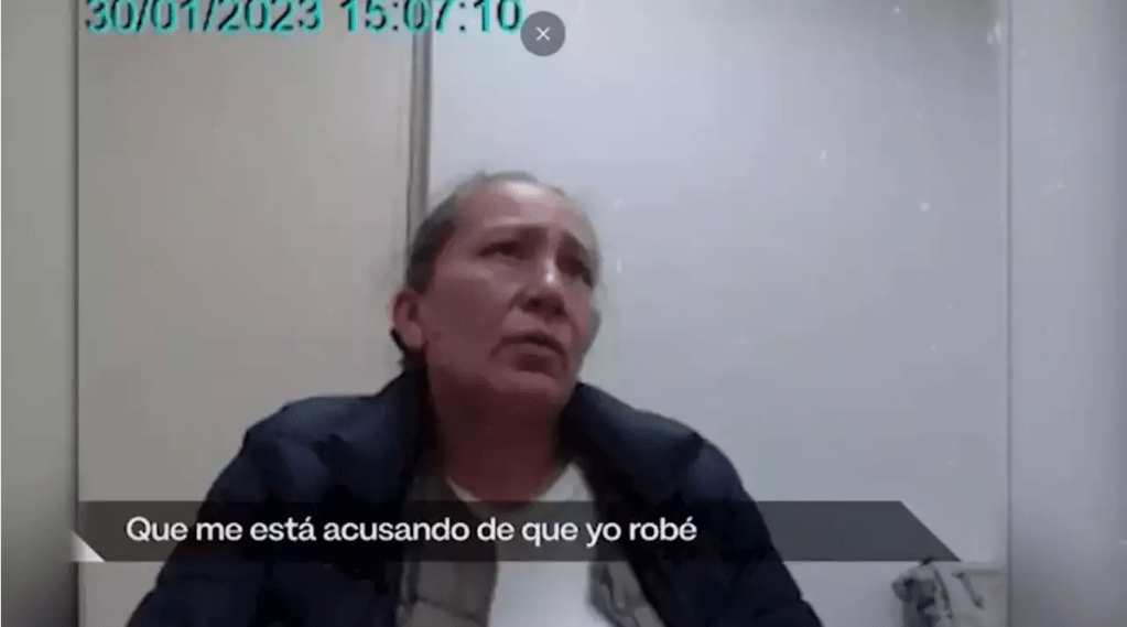 En las imágenes se observa cuando el miembro de la Policía le pregunta a Marelbys Meza “¿Robó dinero usted del maletín de la doctora?”, a lo que respondió que no.