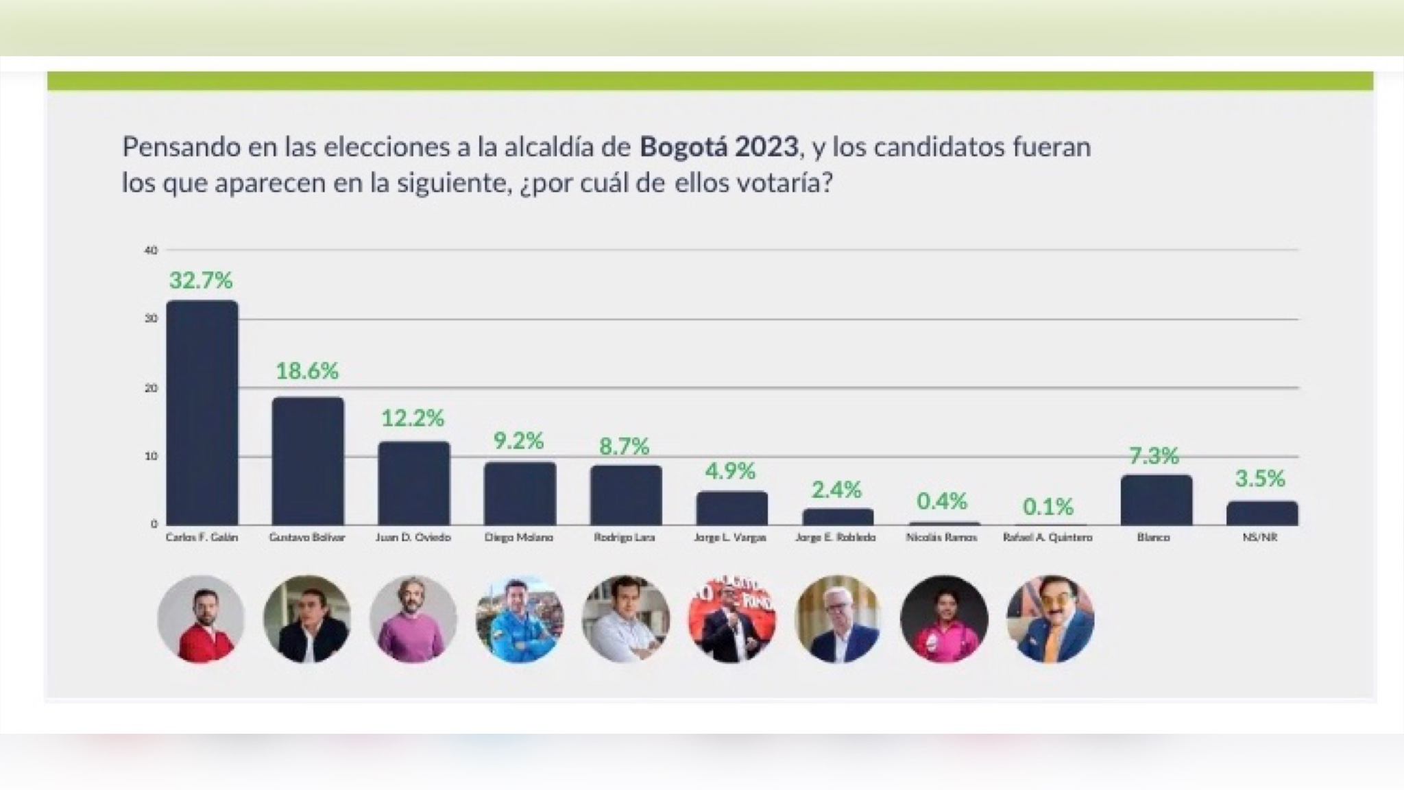 A un mes y medio de las elecciones regionales se conoció el resultado de una nueva encuesta en las principales ciudades del país: Bogotá, Medellín, Barranquilla, Cali y Bucaramanga sobre las preferencias para las respectivas alcaldías. SEMANA y El País de Cali, en alianza con Guarumo-Ecoanalítica, publicaron los resultados de esta encuesta que se realizó … Continuar leyendo Elecciones 2023: Galán se mantiene al frente en Bogotá, mientras en Medellín y Barranquilla siguen amplias diferencias