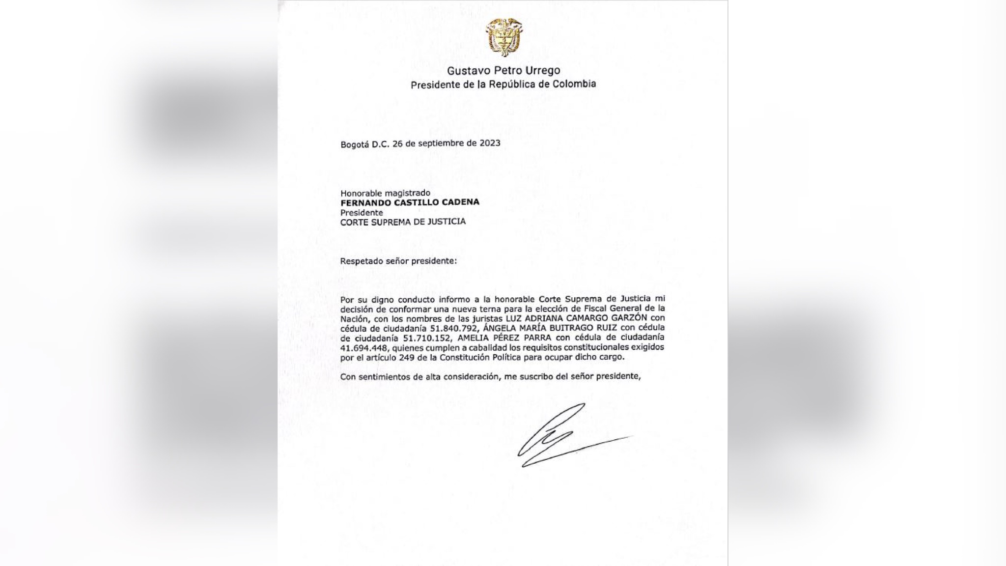 Presidente Gustavo Petro cambió la terna para fiscal general, ¿Quién es Luz Adriana Camargo?