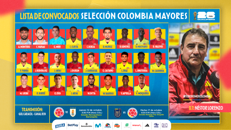 El Departamento Deportivo de la Federación Colombiana de Fútbol – FCF y el cuerpo técnico de la Selección Colombia de Mayores, dieron a conocer el listado de jugadores que disputarán las próximas dos fechas de las eliminatorias del Mundial de Fútbol 2026.