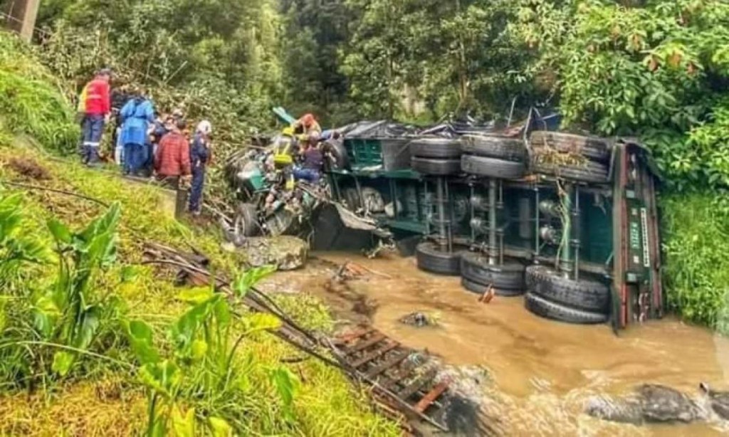 El hecho se produjo a la altura del puente de Boyacá cuando el pesado camión cayó al río Teatinos.