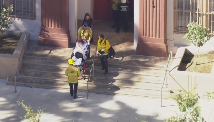 Entre tanto, imágenes captadas por el helicóptero de Telemundo 52 mostró varios jóvenes siendo transportados en sillas de ruedas hacia ambulancias del LAFD.