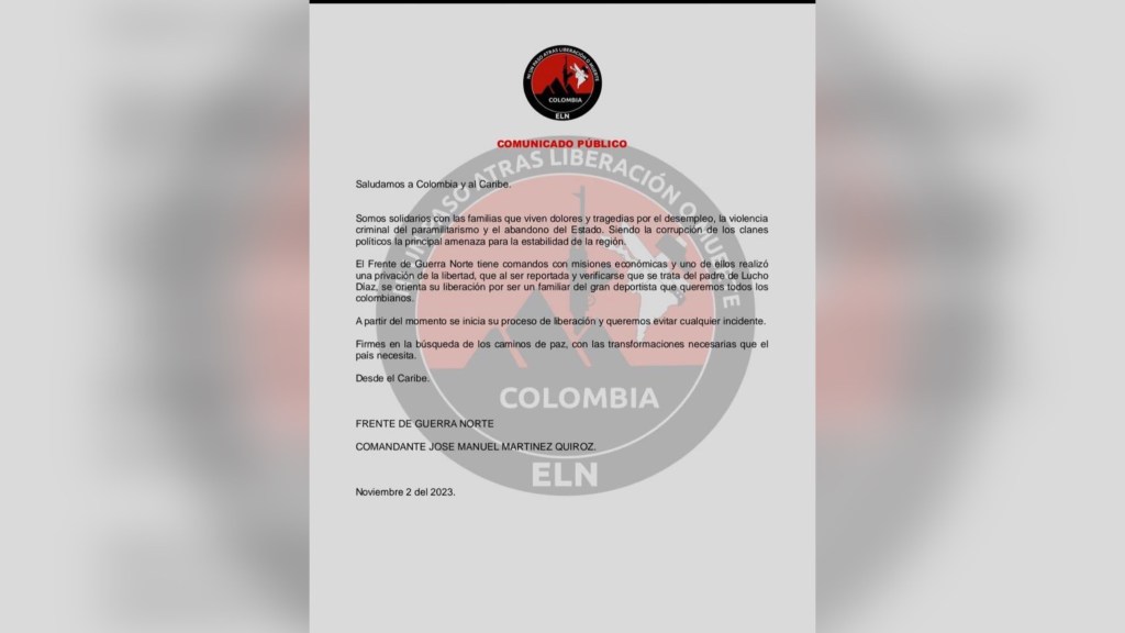Previamente, el ELN advirtió que el secuestro fue carácter extorsivo, pero que al percatarse de que se trataba del papá del futbolista “se ordena su liberación por ser un familiar de un gran deportista que queremos todos los colombianos”.