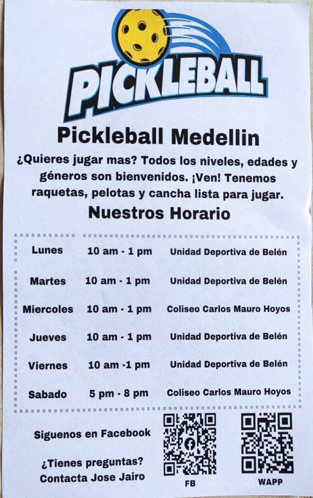 Shoup invitó a visitar la página de pickleball Medellín en Facebook para conocer los horarios y lugares para practicar este deporte.