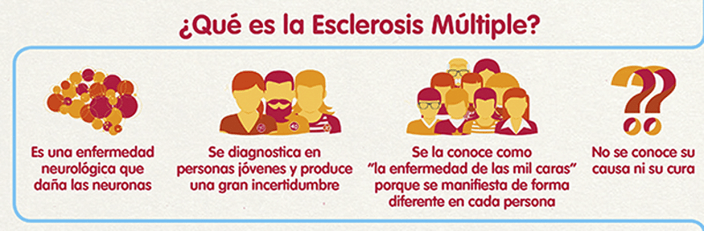La esclerosis múltiple es una enfermedad progresiva del sistema nervioso central que provoca lesiones múltiples en la mielina que recubre los axones de las neuronas y constituye la sustancia blanca, en forma de placas diseminadas.