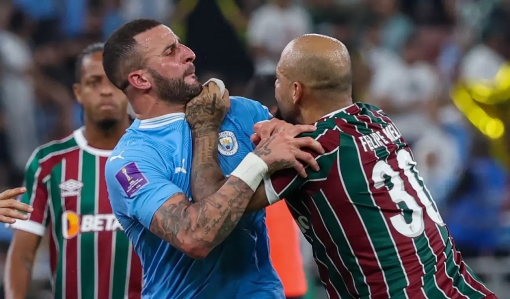 «Después de que el árbitro pitara el final, se desató una pelea entre Kyle Walker (Manchester City) y Felipe Melo (Fluminense)», informó Trix en su cuenta en X (Twitter), al publicar un video y varias fotografías del hecho.