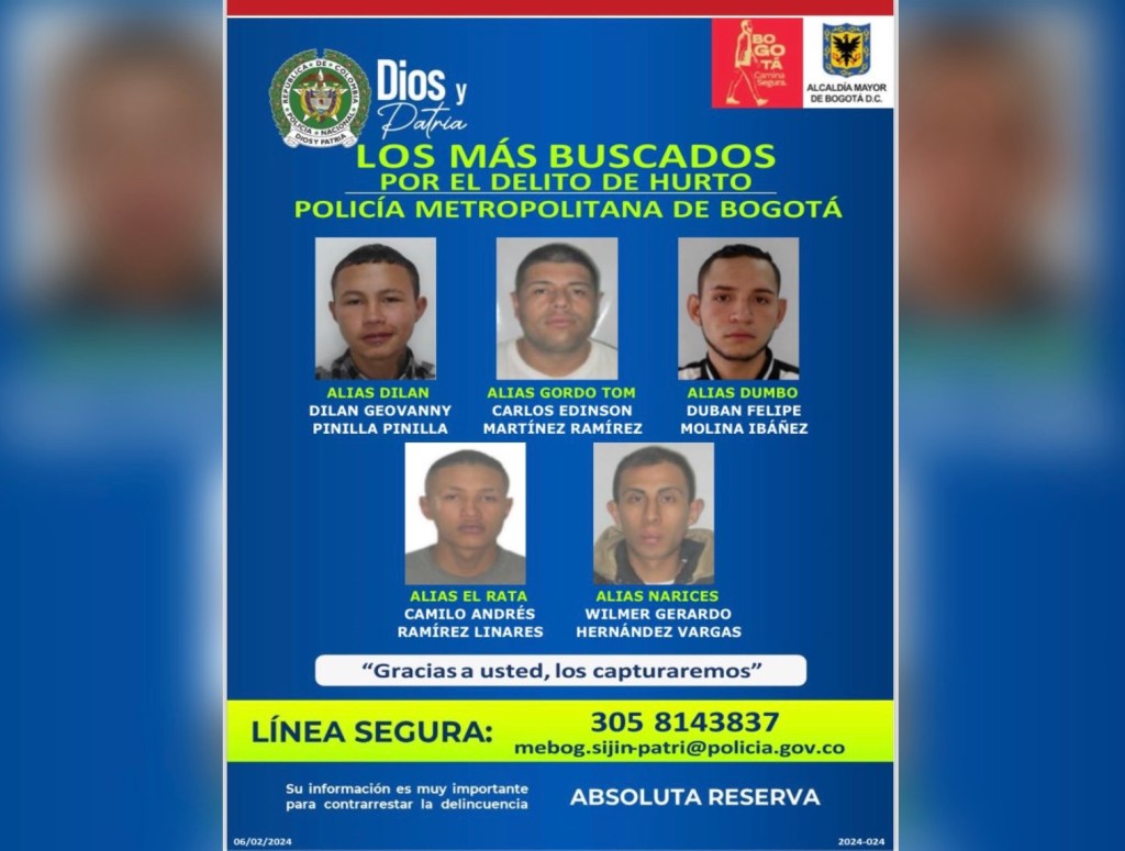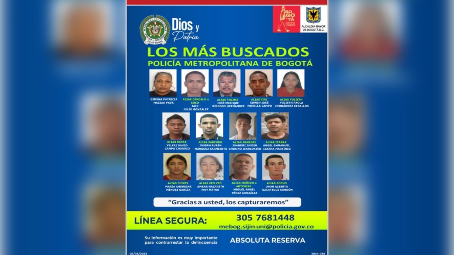 Precisamente, la Policía presentó ‘el cartel de los más buscados’ en la ciudad de Bogotá, son los rostros de las personas que tienen una o más órdenes de capturas vigentes en delitos relacionados con el hurto, extorsión y homicidio, delitos sexuales entre otros.