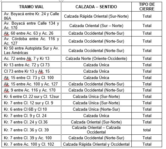 - Se recomienda seguir las indicaciones de la Policía de Tránsito, de personal de la organización y SDM en las vías afectadas, con el fin de minimizar el impacto que la actividad puede ocasionar en la ciudad de Bogotá.