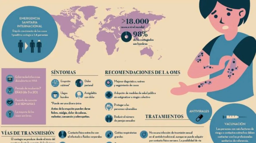 El organismo mundial señaló que se puede propagar mediante contacto cercano, como tocar, besar o tener relaciones sexuales, así como a través de materiales contaminados como sábanas, ropa y agujas.