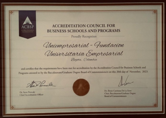 El Consejo de Acreditación de Escuelas y Programas de Negocios, (ACBSP por sus siglas en inglés) reacreditó internacionalmente por 10 años, los programas de Administración de Empresas y Finanzas y Comercio Exterior de la Fundación Universitaria de la Cámara de Comercio de Bogotá, Uniempresarial por 10 años.