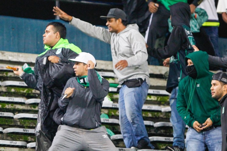 Así quedó registrado en un video en que se ve a seguidores del equipo barranquillero arrinconados, algunos en el suelo, mientras los hinchas de Nacional intentan agredirlos.