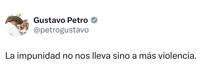 Por su parte, el presidente, Gustavo Petro, cuestionó la sentencia: «La impunidad no nos lleva sino a más violencia».