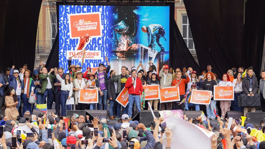 En momentos en que la Comisión VII del Senado votaba, el presidente, Gustavo Petro intervino en la concentración en la Plaza de Bolívar, tras la convocatoria a las marchas durante el día cívico en apoyo a los propuestas sociales.