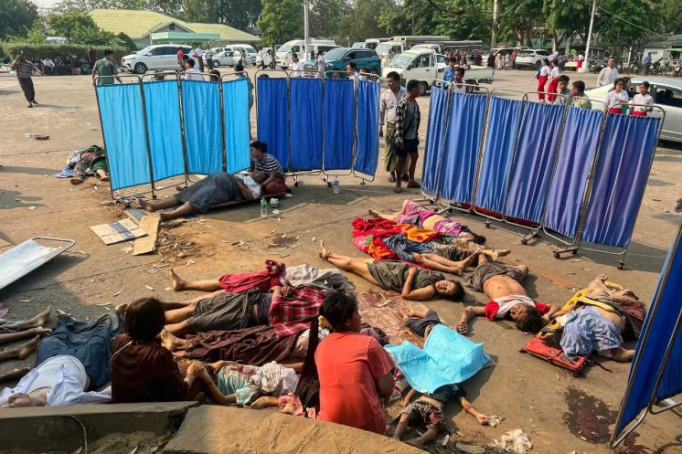 El líder de la Junta Militar de Birmania, el general Min Aung Hlaing, visitó este sábado en helicóptero la región de Mandalay, donde sucedieron los hechos, para inspeccionar los daños causados.