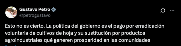 Sin embargo, el presidente Petro quien se encuentra en Honduras publicó un mensaje a través de su cuenta en X señalando: “Esto no es cierto”.
