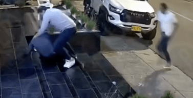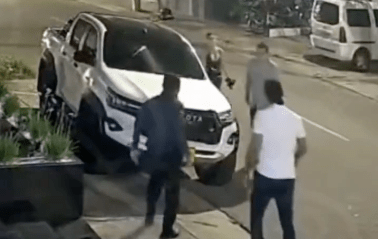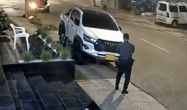 Llegan hacia la parte trasera del automotor forcejeando y es cuando, el hombre le dispara en dos ocasiones al vigilante.