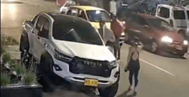En video quedó registrado el momento en el que un hombre agredió y disparó contra un vigilante porque dejó la camioneta Toyota de placas NYL 478 del Villa Del Rosario mal parqueda sobre el andén.