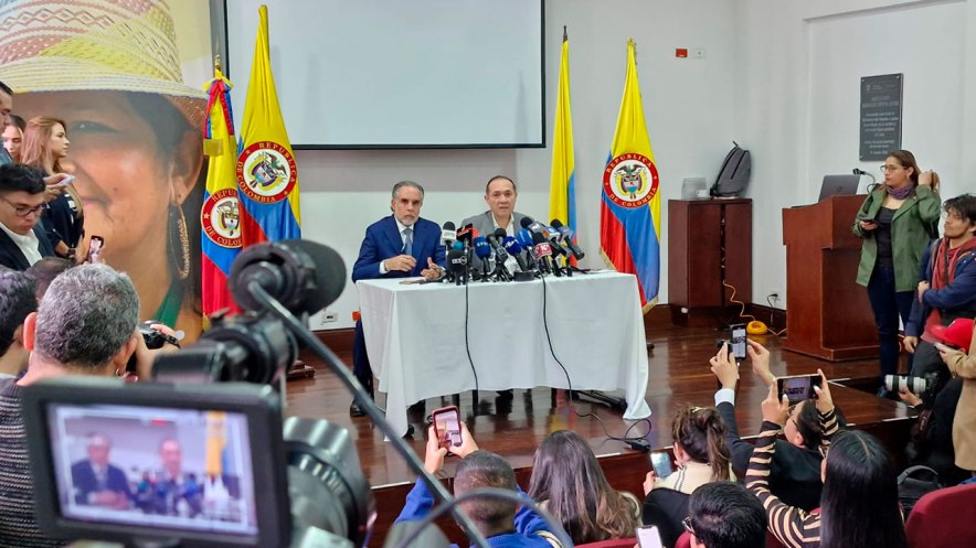 Los ministros del Interior, Armando Benedetti, y de Trabajo, Antonio Sanguino, presentaron el cuestionario durante una rueda de prensa.