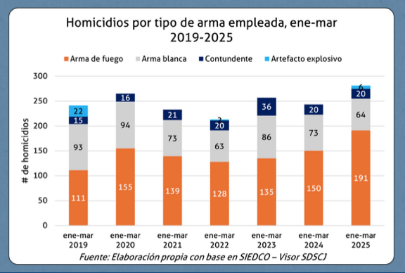 Y añade que “dado el creciente uso de armas de fuego como principal medio para cometer homicidios, se señala la necesidad de fortalecer el control de armas, evidenciando debilidades tanto a nivel nacional como distrital”.