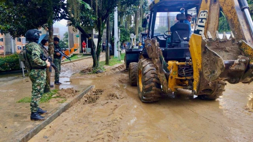 Igualmente, hacen presencia en las labores de apoyo soldados de la Cuarta Brigada de la Séptima División del Ejército.