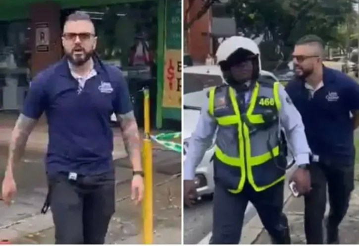 Angulo, cumpliendo con el procedimiento, se acercó a un vehículo que estaba mal parqueado frente a un supermercado del sector e impuso un comparendo. Fue en ese momento, en el que Velasco salió del establecimiento y encara al guarda de tránsito con insultos racistas.