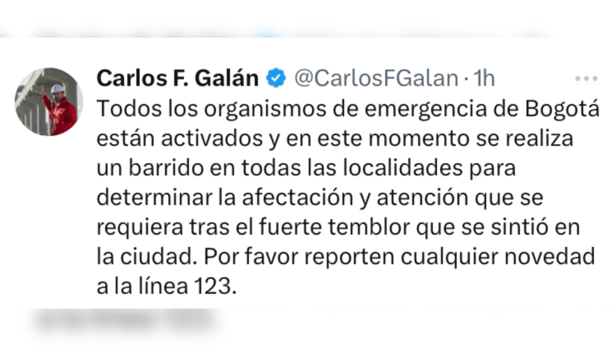 En el caso de Bogotá, el alcalde Carlos Fernando Galán entregó un primer reporte ante el movimiento telúrico.
