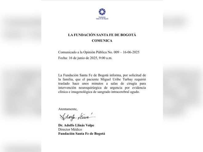 Entre tanto, la familia de Miguel Uribe Turbay pidió a los colombianos una oración por el senador, tras conocerse de esta nueva cirugía.