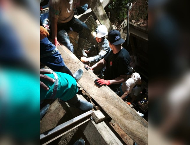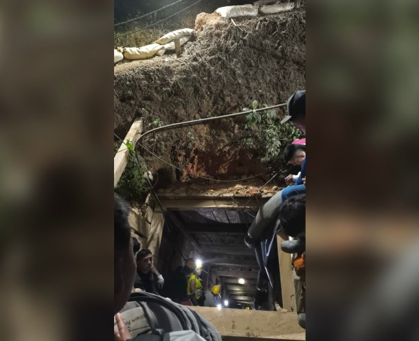 La emergencia se produjo hacia las 3:00 de la tarde del jueves, tras un deslizamiento que hizo colapsar la estructura interna de la entrada principal, por lo que de inmediato se solicitó el apoyo de Salvamento Minero para que empezaran con las labores de rescate.