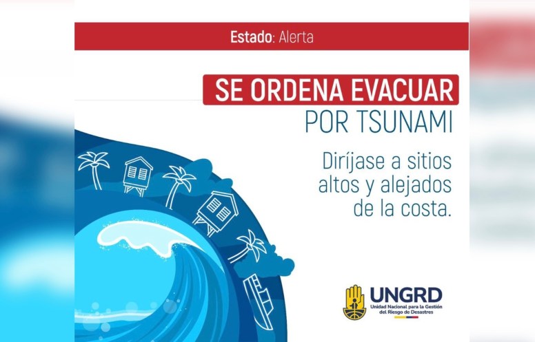 La Unidad Nacional para la gestión de Riesgo de Desastres, UNGRD emitió una alerta de tsunami en el Pacífico Colombiano tras el terremoto de magnitud 8,8 que afectó la península de Kamchatka, en Rusia, dejando afectaciones, sobre todo, en la infraestructura de la región.