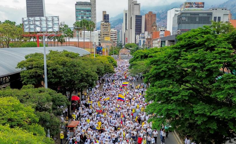 La “Gran Marcha” convocada por el Centro Democrático y otros sectores de oposición congregó a miles de personas en apoyo al expresidente, Álvaro Uribe Vélez, condenado el pasado primero de agosto a 12 años de prisión domiciliaria.