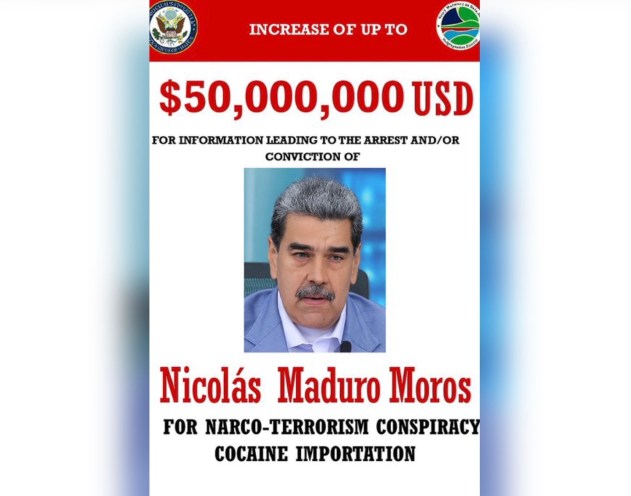 Además de estas versiones se conoció la decisión de la justicia de Estados Unidos de aumentar a 50 millones de dólares la recompensa por la captura de Maduro y de 25 millones por Vladimir Padrino, ministro de Defensa venezolano.