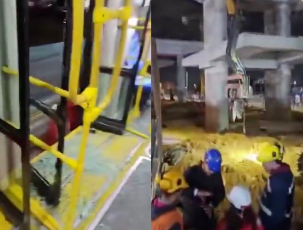 Los testigos indicaron que el bus se desplazaba por su carril exclusivo cuando fue golpeado por parte de la maquinaria de obra, lo que ocasionó momentos de pánico entre los ocupantes.