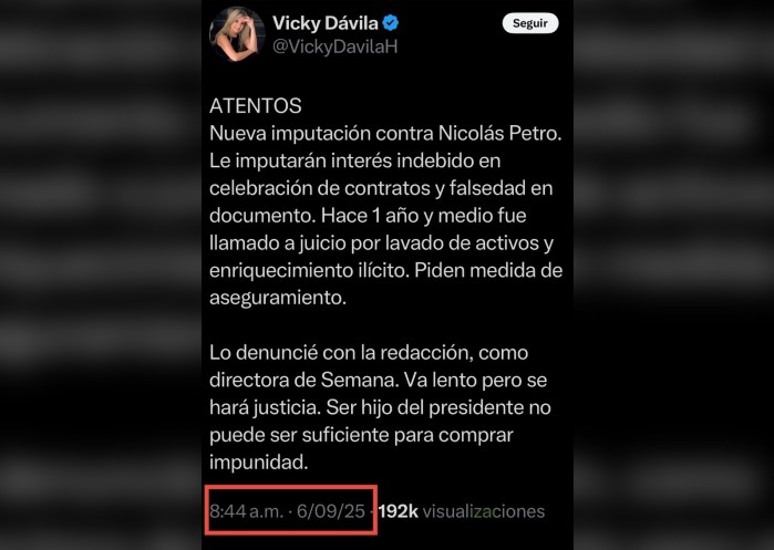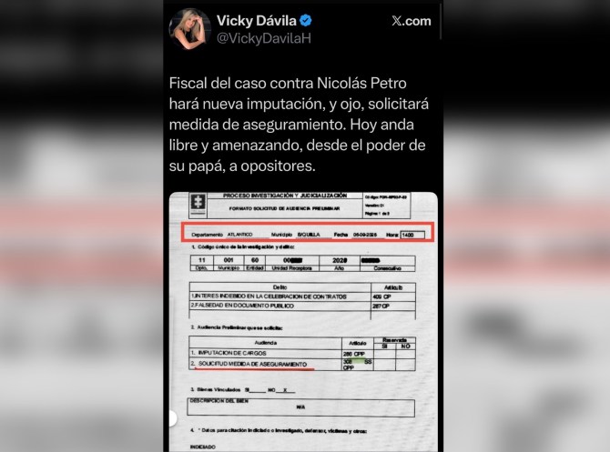 El presidente Petro acusó a la candidata presidencial Vicky Dávila de estar detrás de las supuestas presiones para encarcelar a su hijo Nicolás.