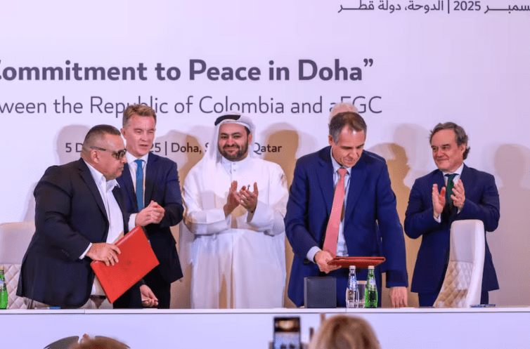 En Doha se reunieron los representantes de la delegación del Gobierno y del Clan del Golfo (autodenominado Ejército Gaitanista de Colombia –EGC), con el acompañamiento del grupo de países mediadores, integrado por Catar, España, Noruega y Suiza.