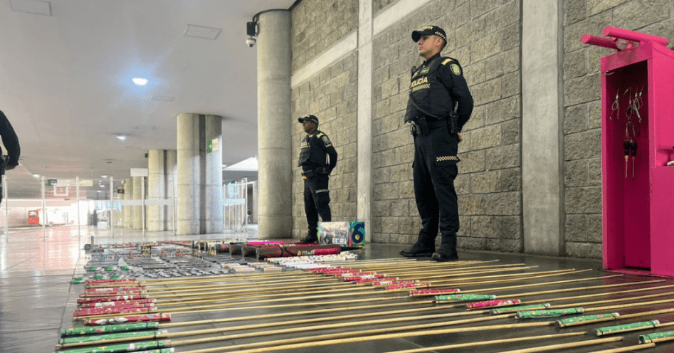La Policía Metropolitana de Bogotá incautó 1.440 unidades de pólvora en las estaciones Avenida Jiménez, Ricaurte 13 y La Sabana, donde, gracias a información suministrada por la ciudadanía.