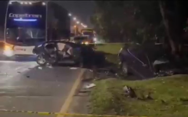 Un grave accidente que se registró en la Autopista Norte, en el que se vieron involucrados un bus de servicio intermunicipal y dos vehículos particulares, dejó dos mujeres muertas.