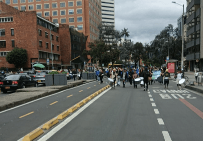Se registran movilizaciones en puntos como la avenida El Dorado, carrera Séptima, carrera 13, calle 72, entre otros, lo que ha originado retrasos en rutas TransMiZonales y troncales de TransMilenio.