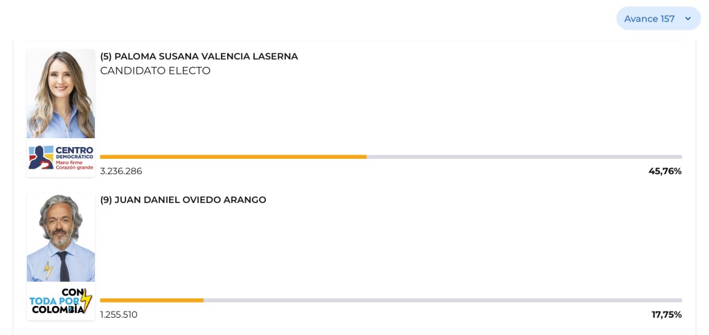 Y en la consulta del Frente por la Vida, esta obtuvo 595.978 votos, de los cuuales Roy Barreras 257.037 y el imputado por corrupción exalcalde de Medellín, Daniel Quintero, 227.037.