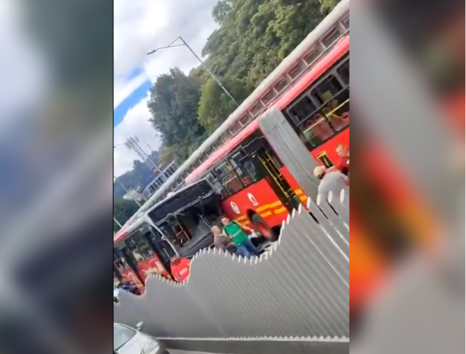 En fotos y videos difundidos en redes sociales se pueden observar los daños en los dos buses articulados, incluyendo la ruptura del parabrisas de uno de ellos.