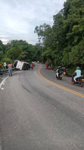 El hecho que se produjo a la altura del kilómetro 72 en el punto conocido como la Curva de la Virgen involucró un bus intermunicipal afiliado a la empresa Expreso del Sol, que transportaba aproximadamente a 11 pasajeros y que sufrió un aparatoso volcamiento.